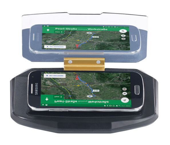 - HUD pour smartphones jusqu'à 13,4 cm (5,5'') et petits afficheurs tête haute (par exemple réf. PX1803)