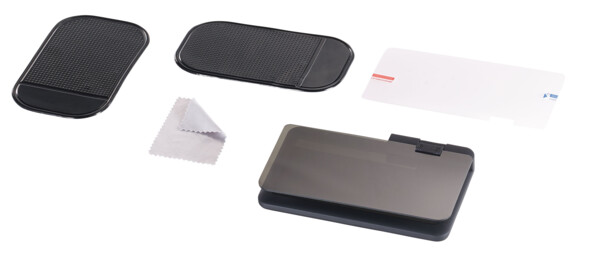 - Afficheur tête haute avec support antidérapant et chiffon de nettoyage