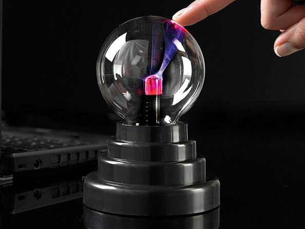 Des éclairs bleus et violets se déplacent sur la paroi intérieure de la boule en verre. Posez votre main dessus pour dévier les arcs électriques, et créer des effets qui vont ensorceler votre bureau !