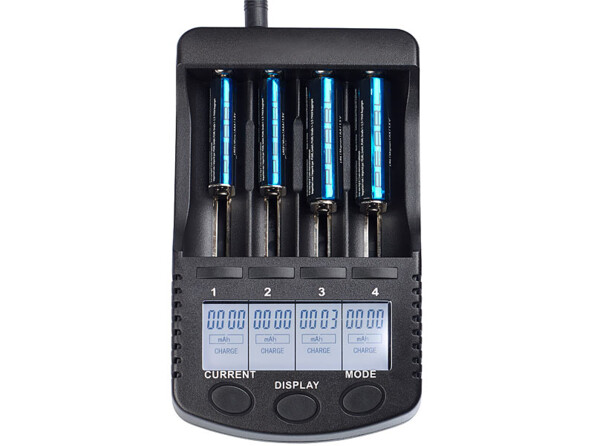 - 4 compartiments individuels, courant de charge par compartiment : jusqu'à 1000 mA (réglable)