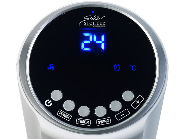 - Contrôle facile directement sur l'appareil avec 6 touches : veille, niveau, minuteur, oscillation, diminuer la température, augmenter la température