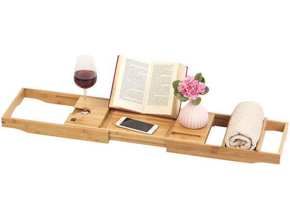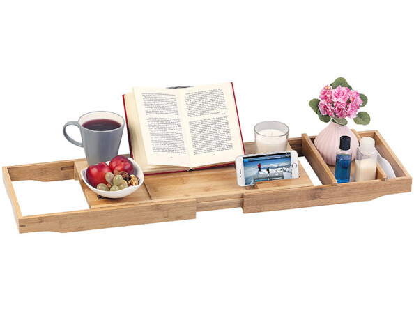 Véritable majordome de bain, ce pont de baignoire vous permet de disposer de vos divers accessoires à portée de main.