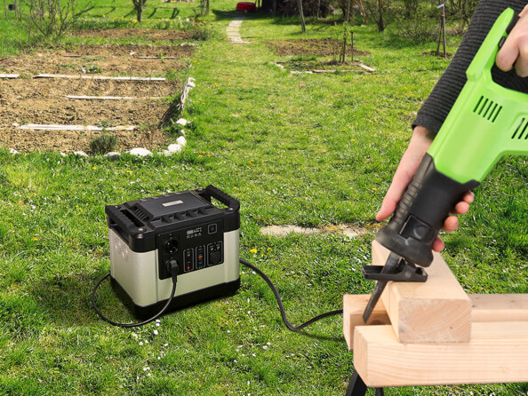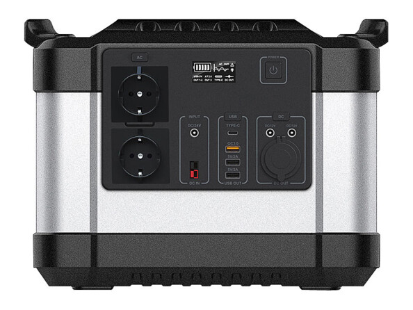 - 2 prises 230 V avec capacité de charge continue de 1000 W pour outils de jardin, ordinateurs portables, lampes à LED, rasoirs, etc.