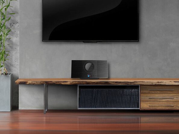Vous pouvez accrocher la chaîne au mur ou la poser sur la table grâce à son pied.