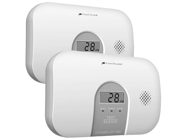 - 2 détecteurs de monoxyde COM-250 avec écran LCD DIN EN 50291-1 : 2018 de la marque VisorTech