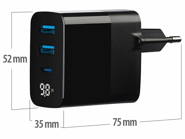 Avec 3 ports USB dont 2 ports USB-A et 1 port USB-C avec fonction Power Delivery, ce chargeur secteur se démarque des chargeurs conventionnels. En effet, contrairement à un port de chargement USB standard, son port USB-C supporte non seulement une tension de charge de 5 V, mais également de 9, 12, 15 et 20 V, le tout avec une puissance allant jusqu’à 30 W !