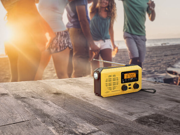 Pour un après-midi tranquille au bord d'un lac ou une virée sportive en montagne : emportez cette radio de poche solaire & dynamo avec écran LCD et profitez de vos musiques préférées absolument partout !