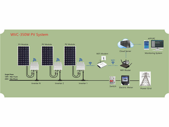 - Possibilité de connecter jusqu'à 25 micro-inverseurs connectés de même puissance entre eux