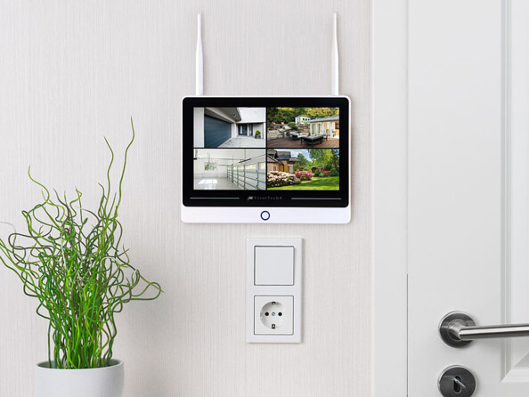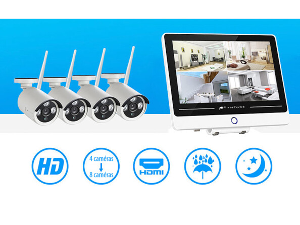 Ce système de surveillance connecté et intelligent avec écran et 4 caméras IP Full HD DSC-850.app de chez Visortech pousse la vidéosurveillance à son paroxysme.