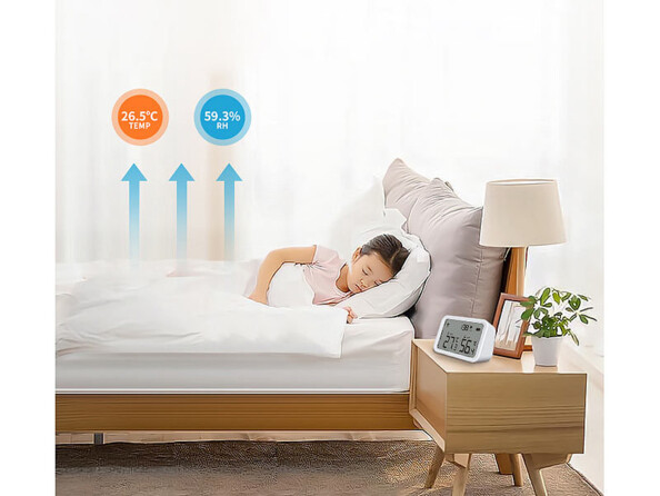 - Grand écran LCD : affiche la température, l'humidité de l'air, la luminosité et le niveau de charge des piles