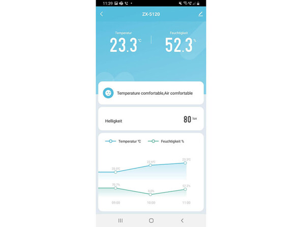 Le capteur connecté mesure régulièrement la température, l'humidité et la luminosité ambiants et transmet les valeurs à l'application. Vous pouvez ainsi contrôler vos différents appareils connectés au capteur selon vos besoins. Par ailleurs, l'alarme réglable vous avertit directement par un signal sonore lorsque les valeurs limites définies sont dépassées ou non atteintes. En un instant, vous pouvez visionner les mesures actuelles sur votre smartphone ou tablette via l'application de domotique ELESION.