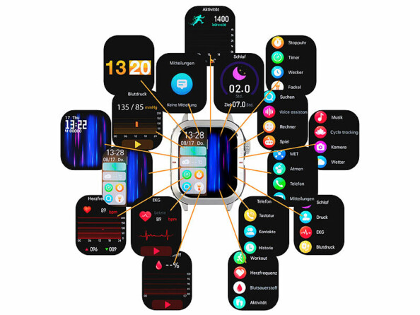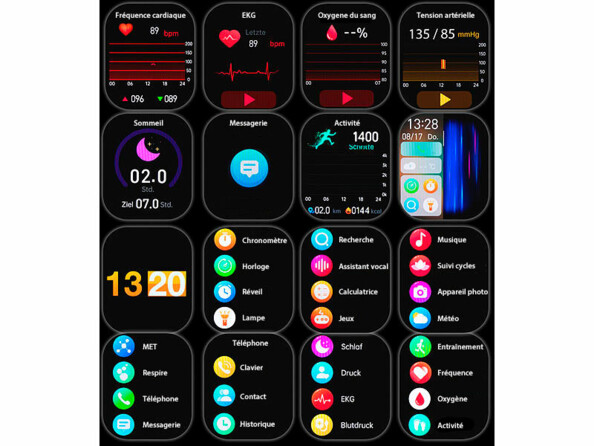 Montre fitness avec ECG, fréquence cardiaque, pression artérielle & oxygène dans le sang à 69,95 €