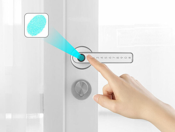 - Poignées sécurisées intelligentes pour portes d'intérieur : ouverture par empreinte digitale, code PIN et application