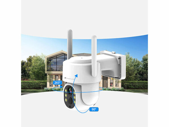 Grâce à la fonction Pan-Tilt, la caméra de surveillance solaire 2K DSC-502.cam de la marque VisorTechpivote horizontalement jusqu’à 263° et s’incline verticalement jusqu’à 90°.