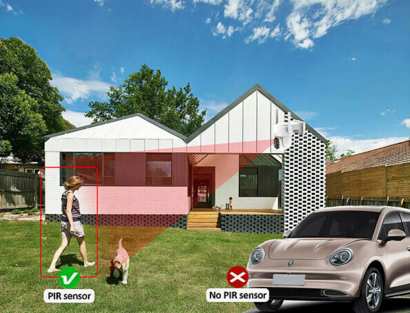 - Capteur de mouvement PIR pour un démarrage automatique de l'enregistrement par l'enregistreur et des notifications push, portée : jusqu'à 7 m, angle de détection : 110°
