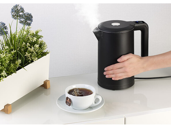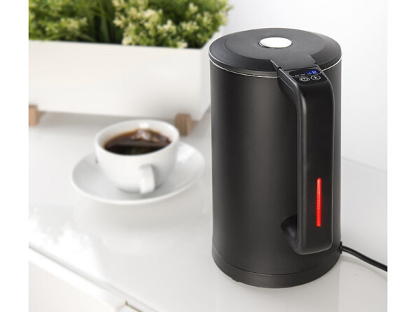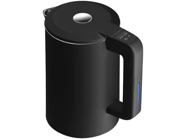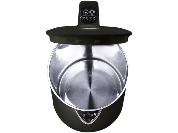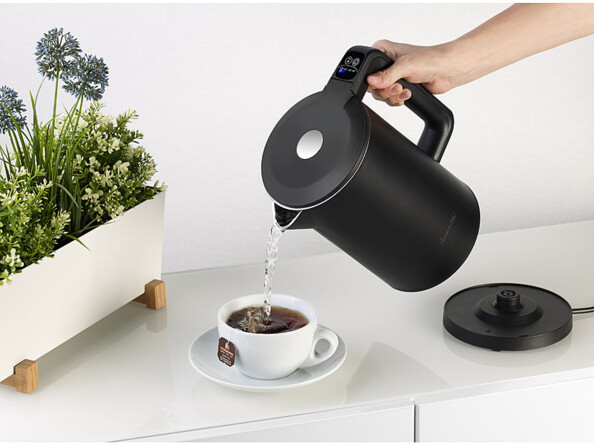 Facile d'utilisation, la bouilloire se contrôle via le panneau de commande tactile clairement agencé. Grâce à sa base 360°, elle convient parfaitement aux droitiers comme aux gauchers.