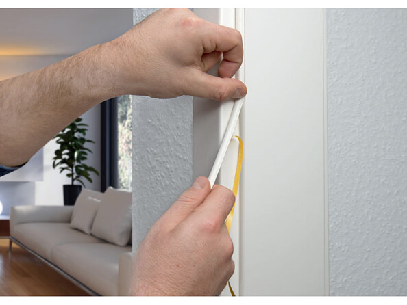 Simple comme bonjour à installer, cette bande d'étanchéité vous permet d'éviter les frais coûteux d'un artisan. Il suffit de détacher une bandelette du rouleau de bande d'étanchéité adhésive en caoutchouc, de la découper, de la poser et de l'appuyer contre la surface à étanchéifier. Rien de plus facile !
