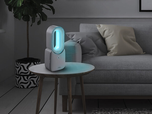 Utile comme rafraîchisseur d'air, le ventilateur peut également servir de lampe d'ambiance. Il vous suffit simplement de régler la couleur de la lumière LED RVB indépendamment de la vitesse du flux d'air, à l'aide de la touche tactile située sur le ventilateur. Pour un jeu de lumière particulier, utilisez le "mode Natural". Le ventilateur alterne alors entre différentes vitesses de vent et différentes couleurs. Ce mode est parfait pour créer une ambiance festive tout en bénéficiant d'une ventilation agréable durant une chaude soirée d'été entre amis sur la terrasse.