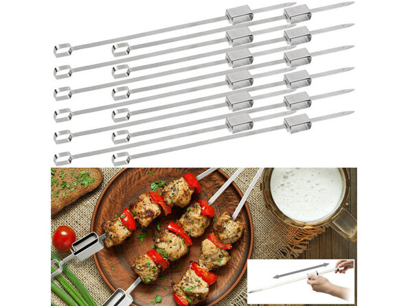 Pratiques, ces 12 brochettes à barbecue sont réutilisables à l'infini et compatibles lave-vaisselle.