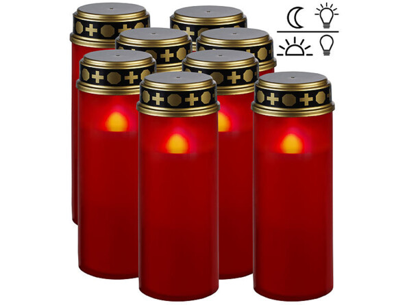 - 8 grandes lanternes funéraires avec capteur d'obscurité, coloris rouge de la marque PEARL