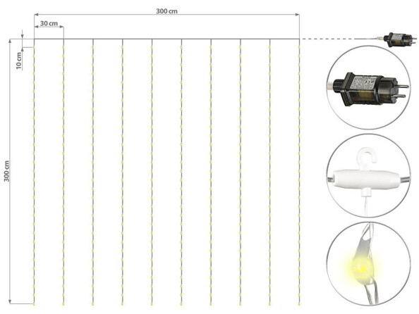 - Rideau à 300 LED blanc (10 x 30 LED)