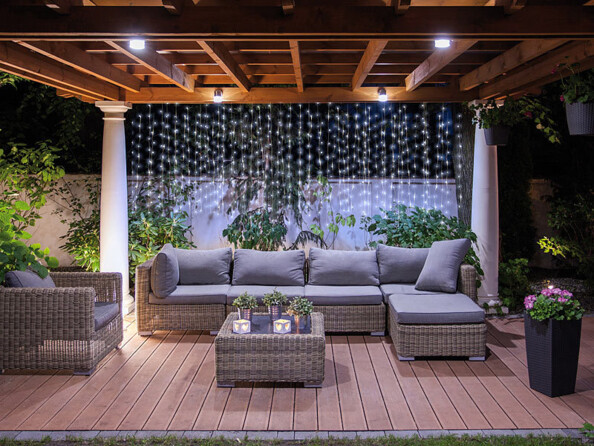 Vous pouvez le suspendre à une fenêtre, une balustrade ou encore une tonnelle ; branchez-le ensuite pour obtenir un rideau de lumière !