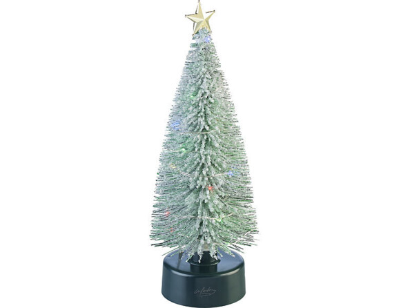 Facile à installer, le sapin lumineux se branche simplement à une prise de courant via son câble USB et un adaptateur secteur USB approprié. Il peut également être branché à un ordinateur équipé d’un port USB libre. Une fois branché, ses LED rouges, vertes, jaunes et bleues s’illuminent instantanément. Elles mettent en lumière la neige artificielle saupoudrée sur l’arbre de Noël miniature, lui donnant alors une allure festive et envoûtante. L’étoile chromée placée sur la pointe du sapin vient compléter l’ambiance de Noël créée par le sapin.