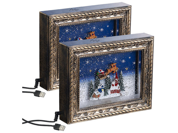 2 cadres décoratifs de Noël avec LED, musique et neige