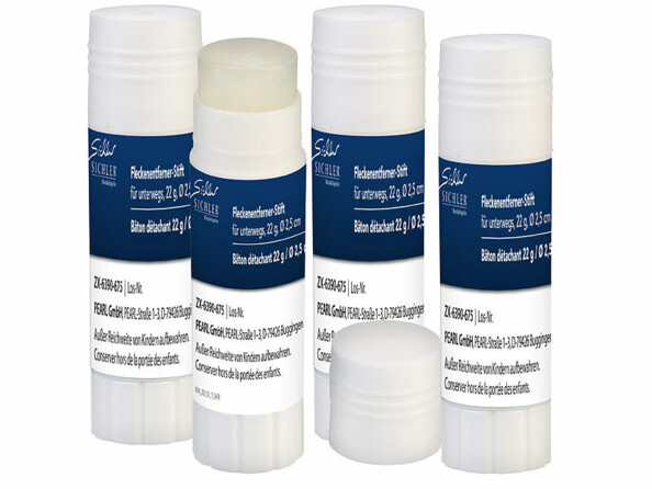 D’une aide pratique, ces 4 bâtons détachants de la marque Sichler Haushaltsgeräte éliminent rapidement et efficacement les taches fraîches de graisse, de sueur ou de fruits de vos textiles.