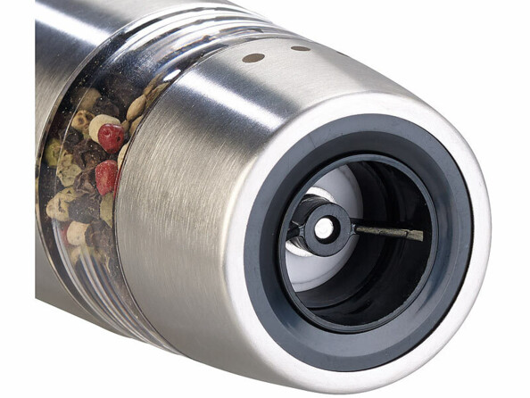 Ce moulin à sel et à poivre automatique de la marque Rosenstein & Söhne est équipé de deux réservoirs à épices.