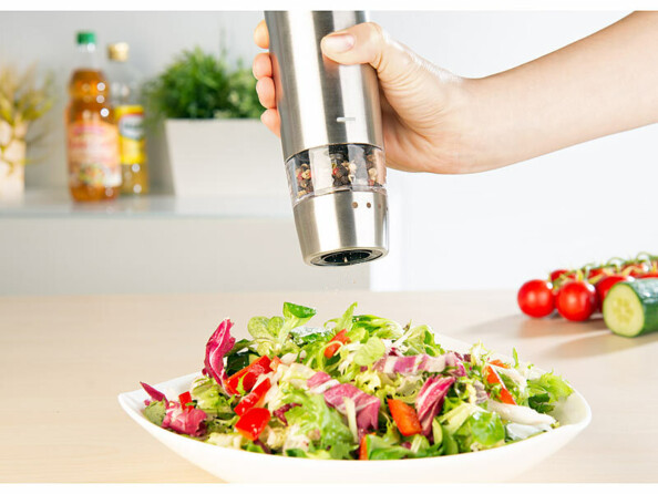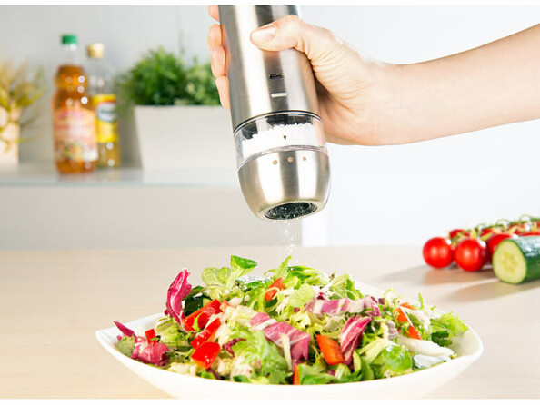 Utilisable à une seule main, l’appareil est très simple à utiliser. Il suffit au préalable de tourner le réservoir à épices souhaité vers le bas et de régler le degré de broyage selon vos goûts. Ensuite, il vous suffit simplement d’appuyer sur le bouton Marche/Arrêt pour assaisonner vos plats en toute simplicité. En un coup de pouce, votre sel de l’Himalaya, vos grains de poivre et autres épices relèvent le goût de votre sauce bolognaise, de vos spaghettis ou encore de vos escalopes pour que vous prépariez des repas pleins de saveurs !