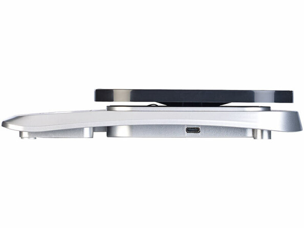 - Dimensions totales : 21 x 16 x 3,5 cm, surface de pesée : 13,5 x 13,5 cm, poids : 282 g
