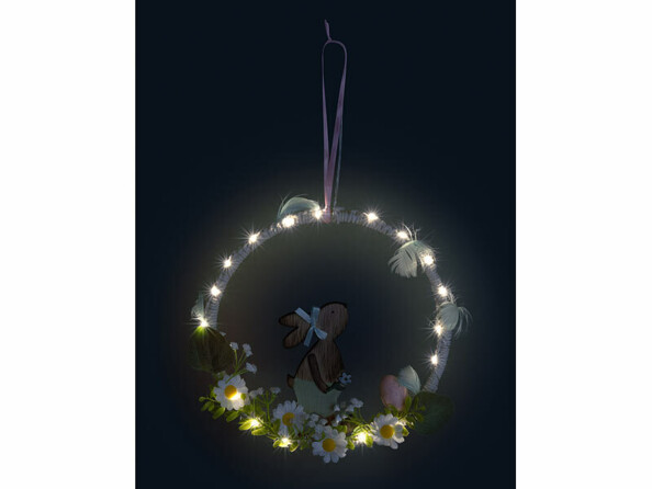 Célébrez le printemps comme il se doit avec cette charmante décoration de Pâques lumineuse à suspendre de la marque Pearl. Délicate et bucolique, elle émerveillera les enfants et attendrira les adultes avec ses jolies pâquerettes, ses plumes blanches et son adorable petit lapin.
