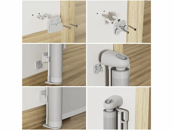 - Barrière de sécurité pour escaliers TSS-85 avec 2 fixations murales, 2 patchs adhésifs, 2 crochets muraux, matériel de montage et mode d’emploi en français
