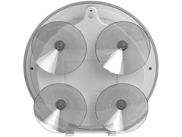 - Fixation par 4 grandes ventouses pour surfaces lisses (carrelage, verre) ou par œillet de suspension