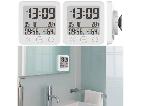 - 2 horloges de salle de bains numériques avec thermomètre/hygromètre de la marque Infactory