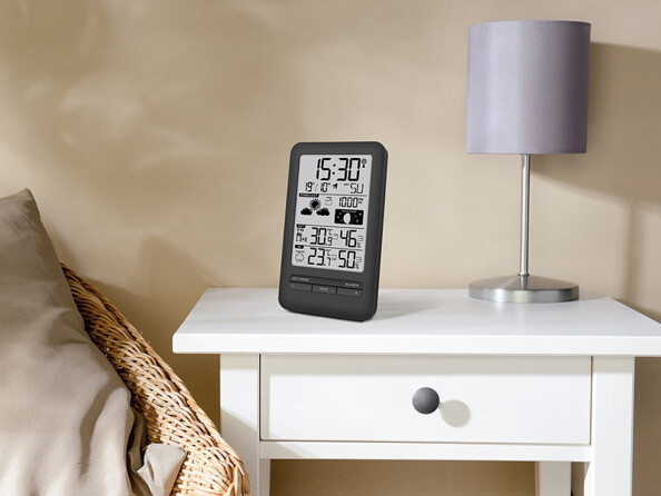 Qu'il pleuve, qu'il neige ou que le soleil brille, la station mesure de manière fiable la température en intérieur et en extérieur, ainsi que la pression atmosphérique et l'humidité de l'air. Les valeurs maximales et minimales de la température et de l'humidité de l'air sont enregistrées. Vous gardez ainsi toujours une vue d'ensemble sur le temps qu'il fait dehors.