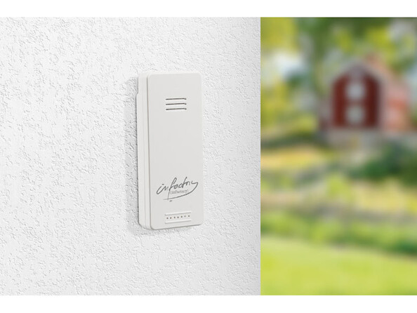 - Capteur extérieur sans fil avec boîtier protégé contre les projections d'eau : IP44, portée de transmission : jusqu'à 60 m (champ dégagé)