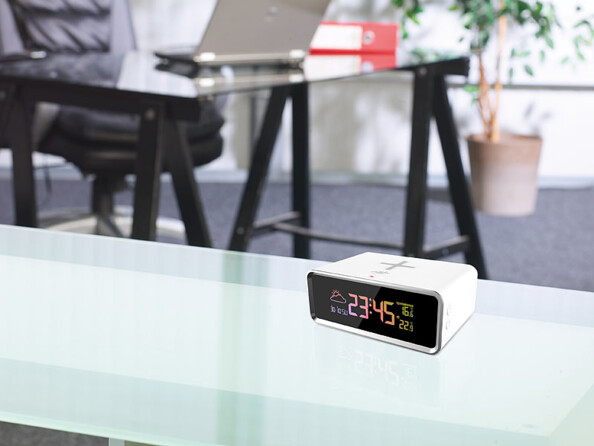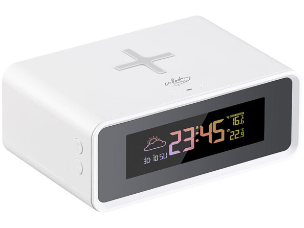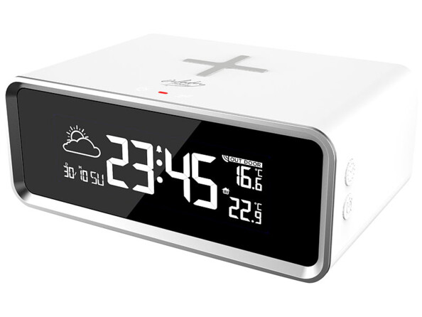 Ne vous laissez pas surprendre par les intempéries : la station météo avec chargeur à induction Qi 10 W vous prévient du temps qu'il fait de façon fiable !