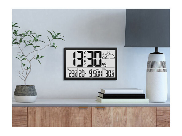 - Horloge murale radio-pilotée digitale avec grand écran LCD, station météo et capteur extérieur de la marque Infactory