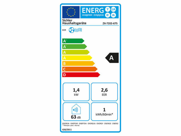 - Classe d'efficacité énergétique A (EER 2,62), 5000 BTU/h