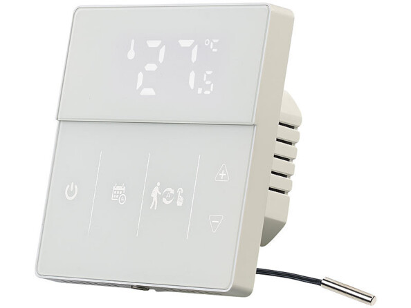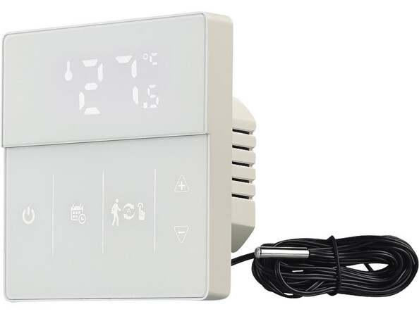 Contrôlable par commande manuelle, automatique ou par programme, le thermostat électrique connecté est simple d’utilisation. Il est possible de définir jusqu’à 6 phases de chauffage par jour, 7 jours par semaine. Les touches du thermostat vous permettent d'effectuer tous les réglages en un clin d'œil. De plus, son écran LCD transparent affiche la température, l'heure et le mode de fonctionnement.