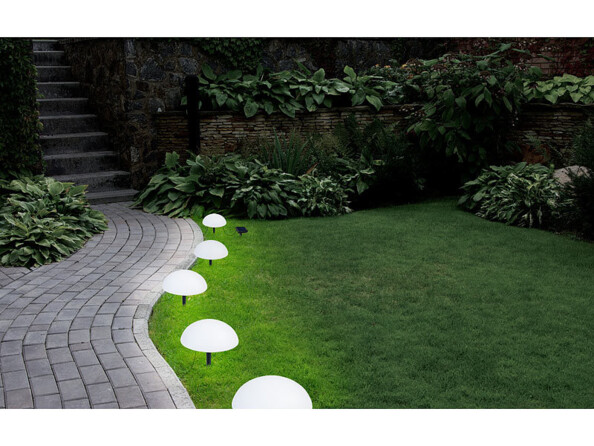 Les piquets de support des demi-sphères lumineuses vous permettent d'installer les guirlandes en un clin d'œil et de manière stable. Vous pouvez donc rapidement installer les éclairages le long d'un chemin, dans un parterre de fleurs ou à un tout autre emplacement où vous en avez besoin.