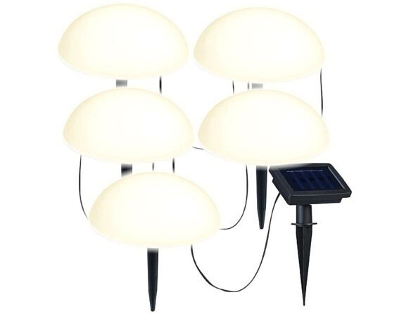 - 4 guirlandes lumineuses solaires de sol avec 5 demi-sphères LED de la marque Lunartec