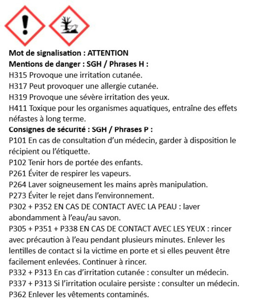 - Toxique pour les organismes aquatiques, entraîne des effets néfastes à long terme.