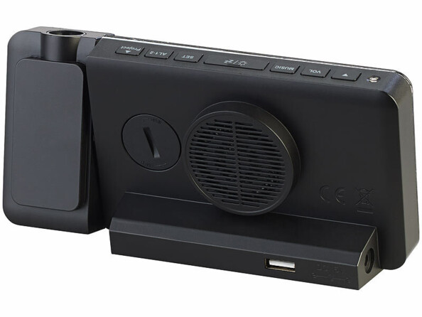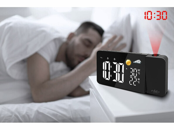 - Projette l'heure et la température au mur ou au plafond : chiffres blancs bien lisibles