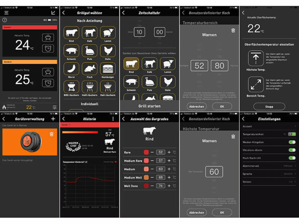 L’application gratuite recommandée vous permet quant à elle d’obtenir les meilleurs résultats de cuisson possibles. Elle vous permet de choisir parmi de 9 types de grillades, de régler le degré de cuisson souhaité selon 5 paliers et vous permet même de définir le niveau de fumage selon 3 réglages possibles ! Et pour des grillades encore plus savoureuses, l’application vous alerte dès que la température cible est atteinte.