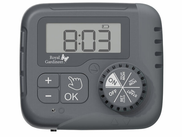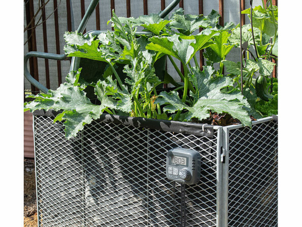 Le programmateur d’arrosage arrose vos plantes vertes de manière entièrement automatique. Il vous suffit de régler la durée et la fréquence de l’arrosage à même les appareils pour qu’il alimente vos plantes en autonomie. Vous pouvez ainsi en profiter pour vous occuper du reste du jardin ou pour vous prélasser sur votre balcon en toute tranquillité. En cas de pluie pendant plusieurs jours successifs, il vous suffit d'appuyer sur un bouton pour suspendre l'arrosage pendant 1, 2 ou 3 jours, le temps que la météo s’améliore. En temps normal, les goutteurs des systèmes d’arrosage assurent un approvisionnement en eau précis directement à la racine de vos chères plantes vertes. Ils vous permettent d’arroser au total jusqu’à 15 plants en même temps !