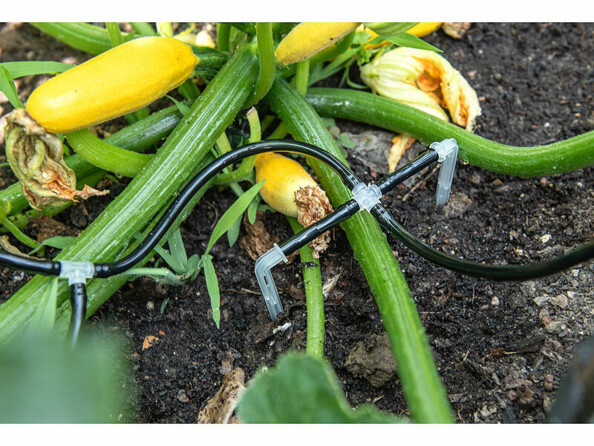 Grâce à un tuyau découpable d’une longueur de 15 mètres et à de nombreux raccords, vous pouvez installer les systèmes d'arrosage là où bon vous semble, que ce soit en travers de votre parterre de fleurs ou entre vos arrangements floraux. L'arrosage par tuyau posé au sol permet à l'eau de s'infiltrer directement dans la terre. Ainsi, aucune goutte ne se perd. Vous économisez ainsi de l'eau et de l'argent.