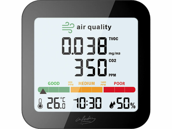Gardez un œil sur la qualité de l'air de votre intérieur en en contrôlant la teneur en composés organiques volatils par le biais de ces deux appareils de mesure sans fil de la marque Infactory.